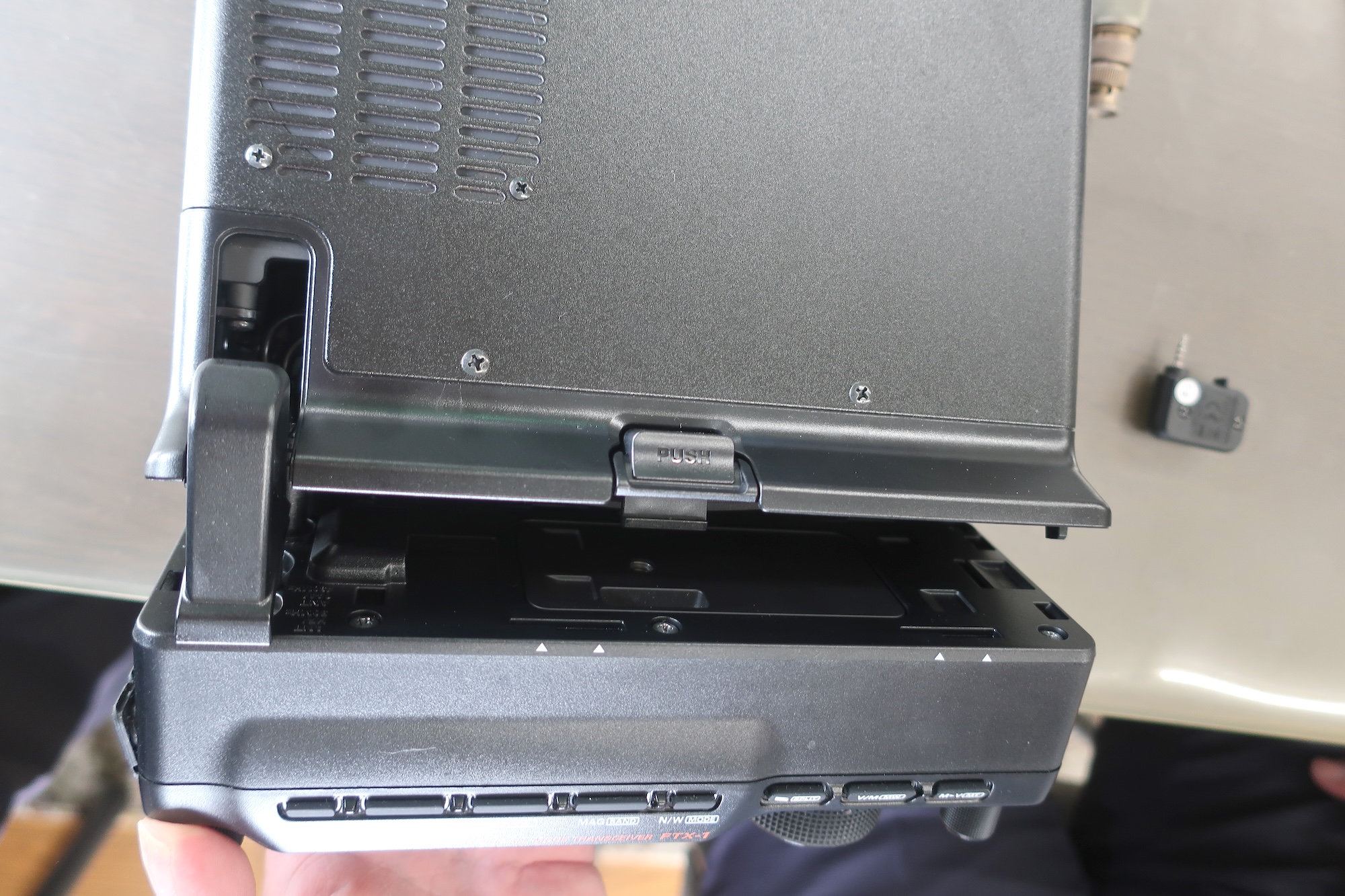 ● 大容量バッテリーとオプションのアンテナチューナーFC-80を同時装着で一体化、フィールドへ持ち歩きも便利