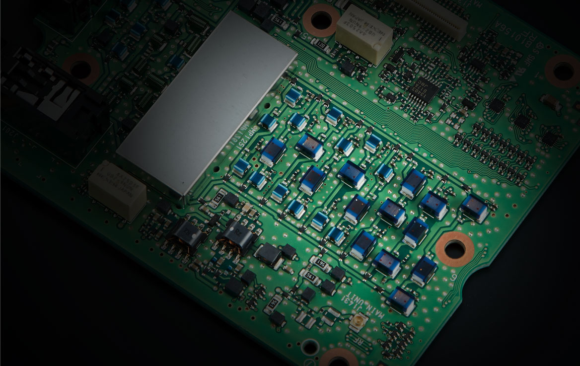 IC-7300MK2のBPF(バンドパスフィルター)は15分割。RF段でバンド外の妨害信号を確実に減衰させます。しかも、High-Qコイルを使用することで、上位機種同等の特性を実現しています。