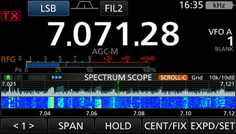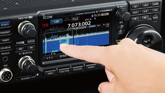 IC-7300MK2のリアルタイムスペクトラムスコープは、分解能、スイープスピード、ダイナミックレンジなど、全てにおいて高度な運用を可能にするスペックを備えています。受信音を聞きながら空き周波数の確認やバンドコンディションの把握はもちろん、目的の信号に素早くアクセスすることが可能です。IC-7300MK2なら、高性能なリアルタイムスペクトラムスコープを生かした高度な運用を楽しんでいただけます。