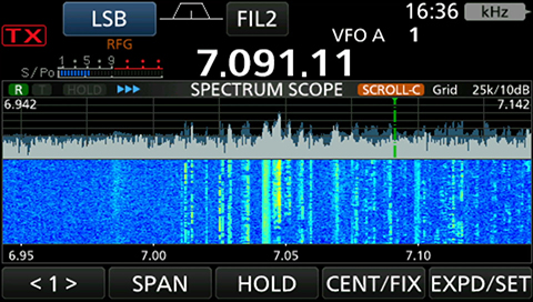 ウォーターフォール表示により、受信信号の履歴を時系列で確認したり、スペクトラムスコープだけでは判別しにくい微弱な信号を視認したりすることが可能。さらに、スペクトラムスコープと同時に表示することで、バンドの状況、空き周波数の情報を、より詳細に知ることができます。高性能なスペクトラムスコープとウォーターフォール表示により、微弱なDX局の信号を見逃すことなく、IC-7300MK2の受信性能を最大限に引き出し、交信の可能性を高めます。