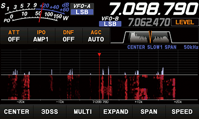 これにより、運用中に受信バンドをモニターしながら同時に受信音のスペクトラムを表示するAF-FFT機能で相手局の送信電波のオーディオ特性を見たり、受信部のフィルターや混信除去機能を調整する際にも効果を視覚的に確認することができ、コンテストなどにおいて瞬時に全体のコンディションを把握することができます。