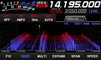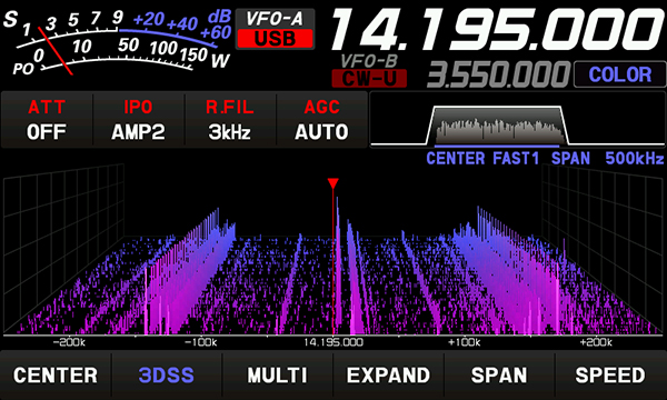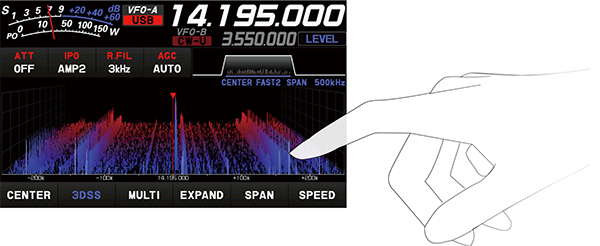 リアルタイムスペクトラムスコープ表示は、FTDX101で新たに開発された3DSS(3-Dimensional Spectrum