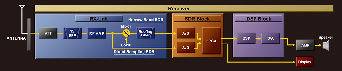 FTDX10シリーズは、FTDX101で開発したナローバンドSDR方式とダイレクトサンプリングSDR方式を合わせ持つハイブリッドSDR構成です。
