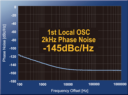 ローカル信号のフェーズノイズ特性は、近接2kHz(14MHz帯)において、-145dBc/Hzを達成しています。