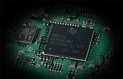 (最大2949MIPS/2220MFLOPS)を採用、クロック周波数368.64MHzで高速デジタル処理を行います。