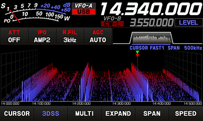 リアルタイムスペクトラムスコープ表示は、FTDX101で新たに開発された3DSS(3-Dimensional Spectrum
