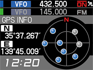 高精度の測位を可能にする準天頂衛星システム「みちびき」に対応したGPSレシーバーを搭載しています。C4FMのデジタルモードでは音声通信を行なっている間でもリアルタイムで相手局の位置と方向を表示できます。フロントパネルには外部端子を備えており、外部GPS機器を接続することもできます。